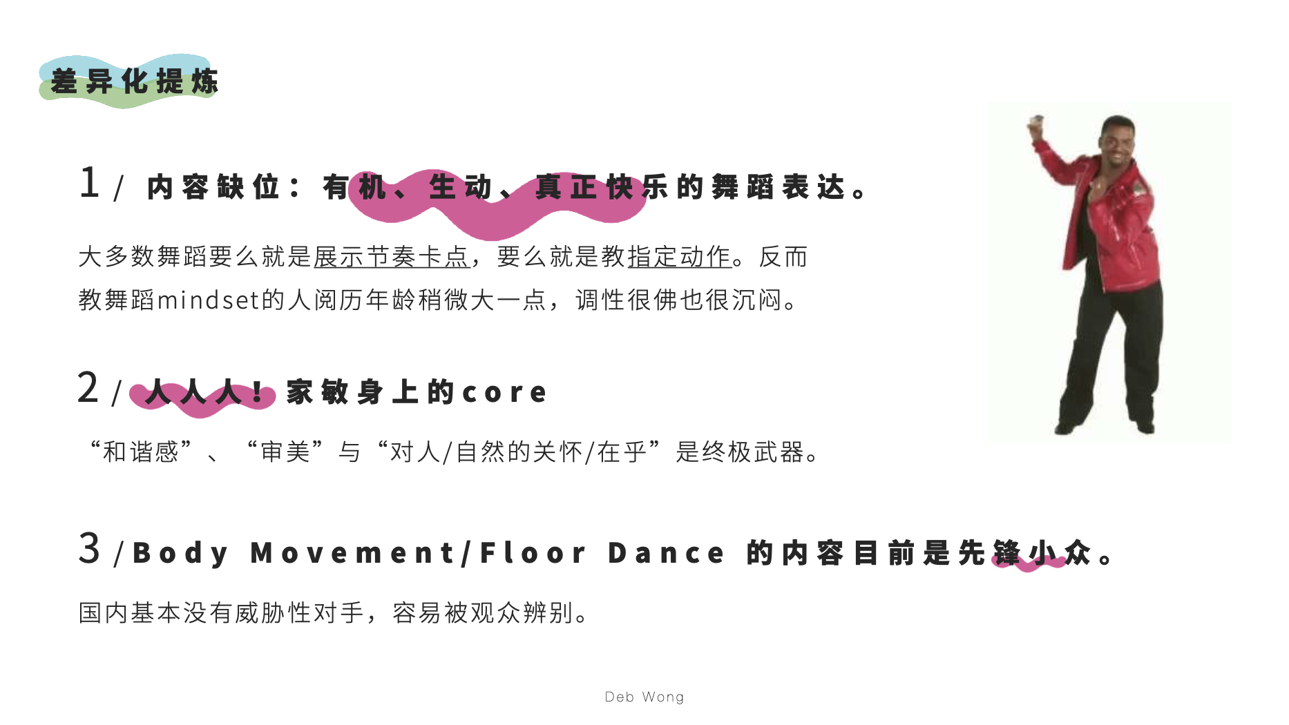 家敏是一个从未停止跳舞的人,正因如此,她从来没有停下来想过如何营销自己。而我,是一个热爱跳舞、却花了多年时间研究品牌如何找到它的人。我们之间,拥有一切所需:灵魂,以及承载它的系统。