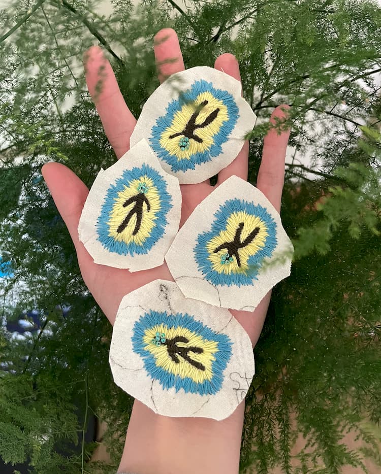 A lifelong obsession with handcraft and print since fifteen, materialized into every stitch and mark. Independently developed orange-peel regenerative paper — from pulping fruit fibers to sun-drying — a full-chain practice from waste to emotional artifact. Even the brand's digital presence was hand-coded, so that the warmth of craft could survive into the screen.