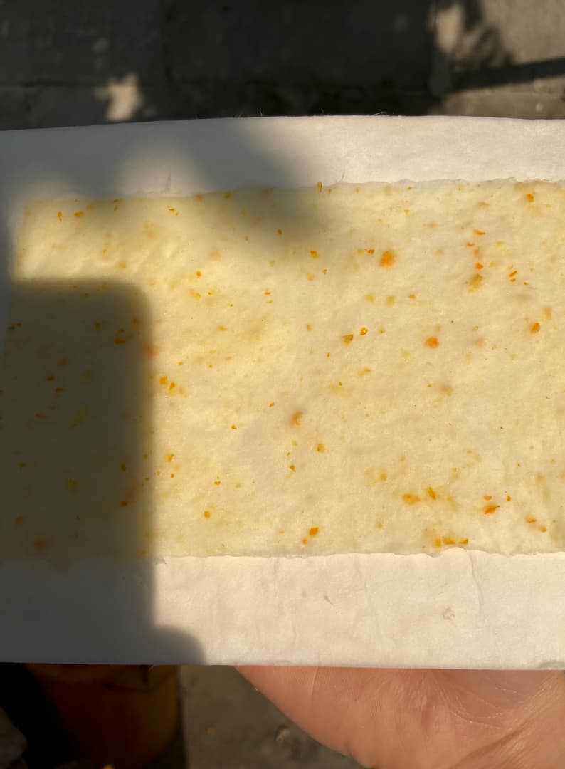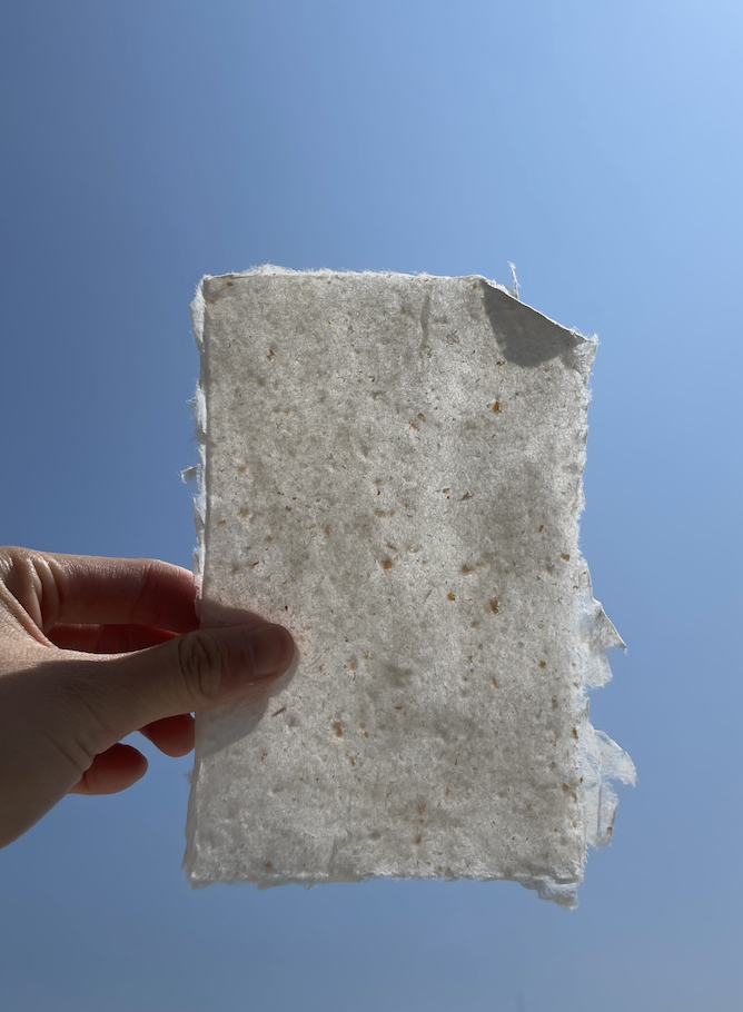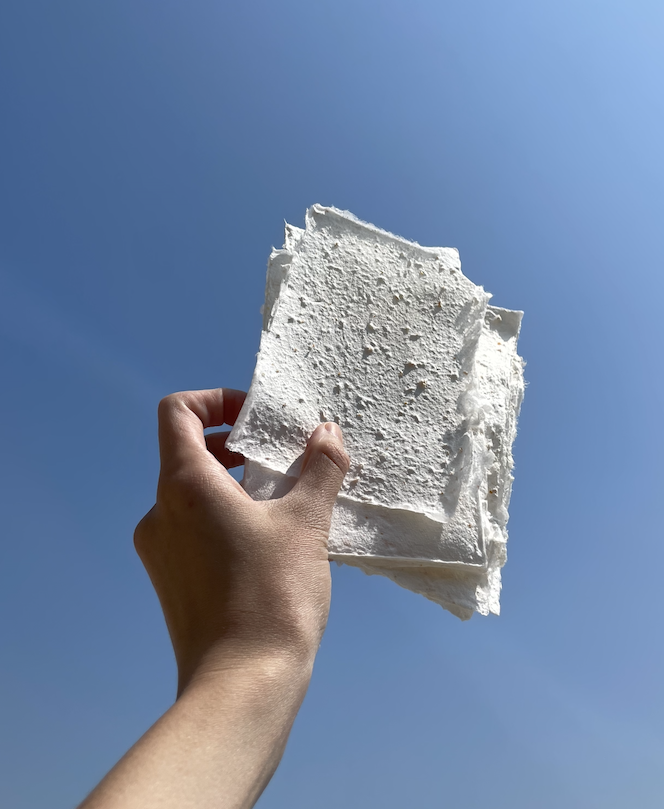 从15岁起对手作与印花的迷恋,物化为每一寸线迹。自主研发橙皮再生纸,从果皮纤维的打碎到阳光下的晾晒——从废弃物到情感载体的全链路实践。甚至亲自编写前端代码,让品牌的数字呈现依然保有手工的温度。